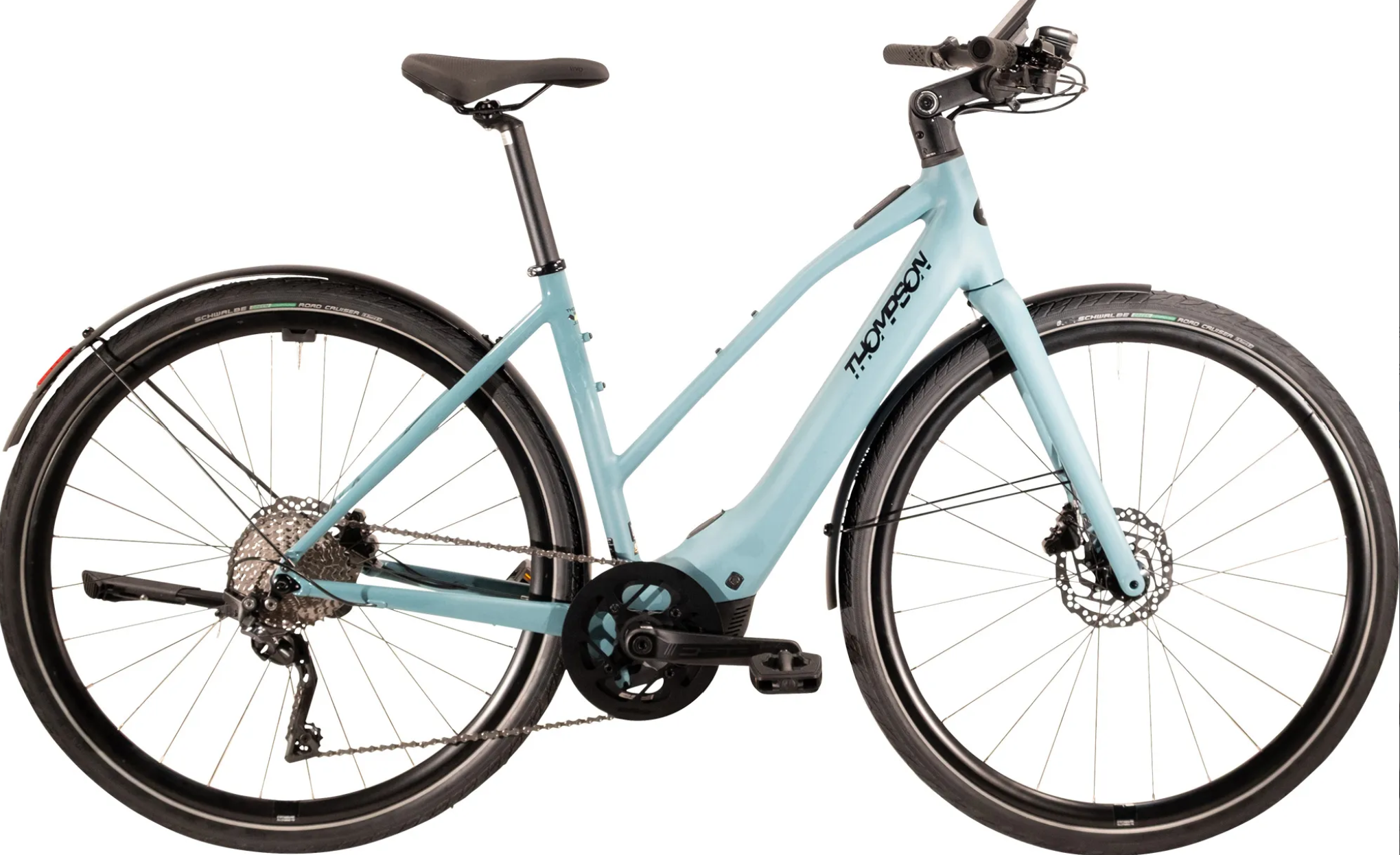 Ce vélo électrique BC-S au style épuré allie rigidité et légèreté avec un cadre en aluminium et une fourche full carbone.